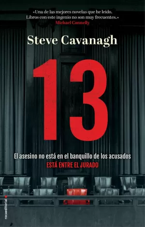 EL ASESINO NO ESTÁ EN EL BANQUILLO DE LOS ACUSADOS,ESTÁ ENTRE EL JURADO.MÁS DE 250.000 EJEMPLARES VENDIDOS.EL THRILLER LEGAL DEL QUE TODO EL MUNDO ESTÁ HABLANDO.«A su entender, ¿hay algún impedimento para que usted forme parte de este jurado?»El asesinato no fue la parte más complicada. Fue tan solo el inicio del juego.Joshua Kane se ha estado preparando toda su vida para este momento. Ya lo había hecho antes, pero esta vez será la más importante.Este es el juicio por asesinato del siglo, y Kane ha asesinado para obtener el mejor asiento en la sala.Pero hay alguien al acecho, alguien que sospecha que el asesino no es el acusado.Kane sabe que el tiempo se agota y lo único que quiere es el veredicto de la condena antes de ser descubierto.13 RAZONES POR LAS QUE DEBES LEER ESTE LIBRO«El John Grisham para una nueva generación.» Sarah Pinborough«Cavanagh es de lo mejor del momento. Créanme.» Lee Child«Inteligente y original. Qué maravilla de libro.» Clare Mackintosh«Gran libro. Engancha. 13 es realmente adictivo.» Simon Kernick«Un thriller lleno de giros brillantes.» Ruth Ware«Un viaje absolutamente compulsivo.» Michael Connelly«Sencillamente merece ser un gran best seller.» Mark Billingham«Cavanagh es, sin duda, el mejor escritor de trhillers legales de nuestros días.» Craig Sisterson«Este libro es simplemente espectacular.» Emma Kavanagh«Fantástico, cautivador. Culpable de todos los cargos.» Angela Clarke«Un éxito absoluto. Maravilloso.» Susi Holliday«Una brillante manipulación al lector.» Mason Cross«Una montaña rusa repleta de giros adictivos. Impresionante.» Cass GreenLO QUE HAN DICHO EN ESPAÑA DE LA NOVELA:«Novela de tribunales y asuntos legales que se vuelve sorpresiva por momentos. Con un abogado poco escrupuloso, Eddie Flynn, y de curiosa e´tica. Para pasar un buen rato.» Babelia, El País«Una novela negra que hará disfrutar a los amantes del género. Diferente, pero con todas las esencias de un thriller redondo.» Blog novela negra y policíaca«Steve Cavanagh, emergente maestro del suspense capaz de colar en un jurado neoyorquino a un asesino en serie que trata de absolverse de sus crímenes.» Miguel Lorenci, Las Provincias«Ingenioso, retorcido y emocionante. Pura dinamita. Declaramos a Steve Cavanagh culpable en primer grado de escribir un thriller brillante y adictivo.» Edición original«Hacía tiempo que no disfrutaba tanto con un libro de este género.» Galaxia Bidena«Os atrapará con su intensidad en los interrogatorios, las investigaciones imposibles y los momentos de tensión.» Fantasymundo «Un thriller interesante, bien construido, con personajes complejos con personalidad propia, giros en la trama y final impredecible.» Salamandra negra«Steve Cavanagh no deja un cabo suelto, nos deja con ganas de más, y estamos deseosas de conocer un poco más a Eddie Flynn.» Qué bello es leer