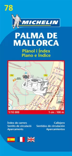 Encuentre todas las informaciones prácticas para recorrer Palma de Mallorca a pie, en coche o en bicicleta. El plano MICHELIN Palma de Mallorca, a escala 1/10 000 (1cm = 100m), es ideal para recorrer los barrios de la ciudad. Para completar la información incluye transportes, sentidos de circulación, localización de monumentos, así como un anexo con el índice de calles.